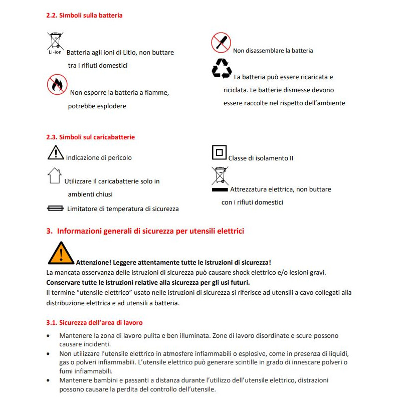 | Alloggiamento batteria | 21,6V 4,0Ah / 21,6V 2,5Ah |