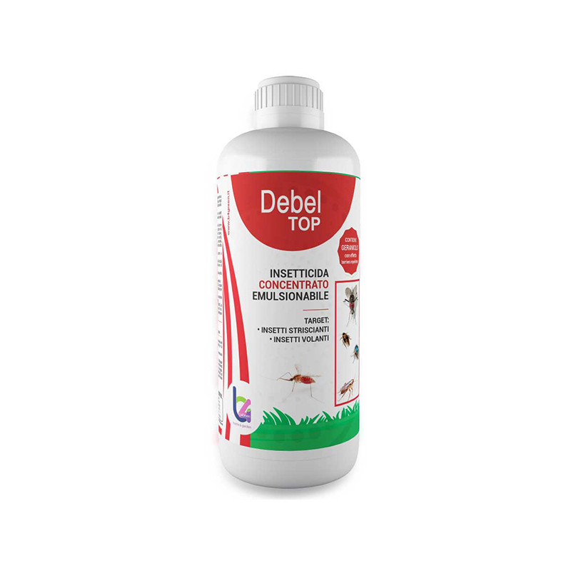 INSETTICIDA CONCENTRATO EMULSIONABILE per uso professionale Debel Top è un insetticida concentrato emulsionabile liquido contenente cipermetrina e geraniolo. La combinazione dei due principi attivi conferisce al prodotto un forte potere abbattente e residuale.