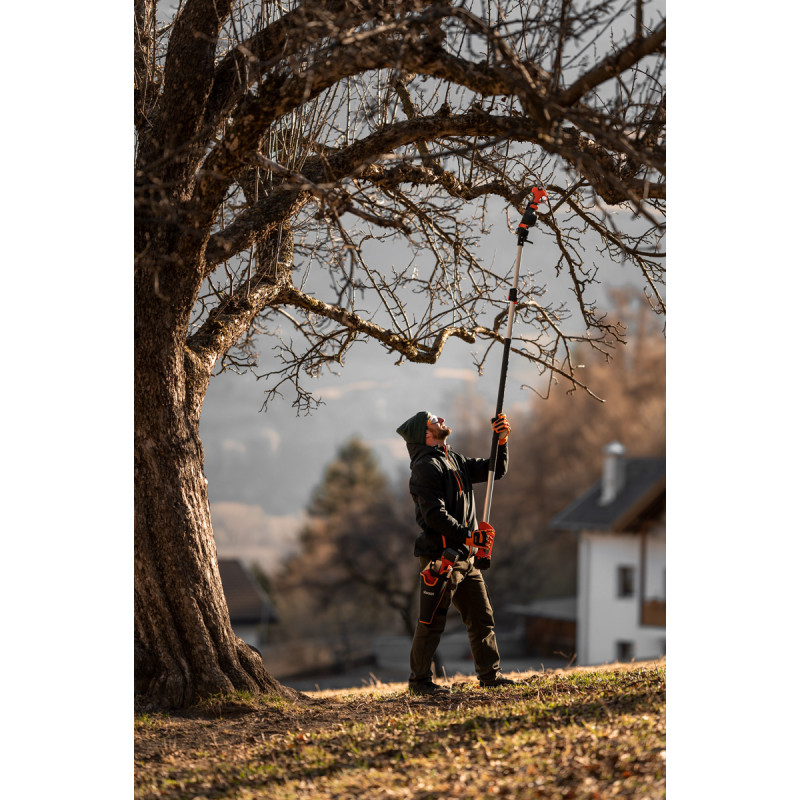 Manico telescopico per forbice elettrica, per una potatura sicura e semplificata da terra. Realizzato in alluminio di alta qualità, il manico è leggero, robusto e dotato di una presa ergonomica e antiscivolo.