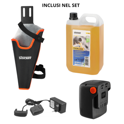 Il kit include fodero di protezione, batteria da 2,6 Ah, caricabatteria doppio, manuale d’uso e kit manutenzione per prolungare la durata della macchina.