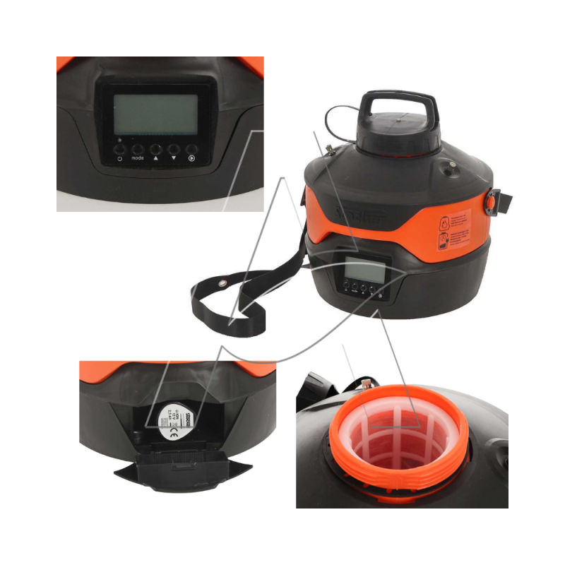 Il nebulizzatore funziona in maniera automatica e sicura: l'intuitivo display posto sulla parte frontale permette di impostare la frequenza e la durata dei cicli, mentre un timer acustico segnala l'entrata in funzione con 30 secondi di anticipo, dando così la possibilità di allontanarsi prima del trattamento. Alimentato da una batteria Li-Ion ricaricabile da 12 V, estraibile velocemente grazie al sistema fast click-in, potrete posizionarlo facilmente nei punti strategici del vostro giardino: a terra oppure appeso grazie alla pratica tracolla inclusa che garantisce la massima flessibilità nel posizionamento. L'autonomia della batteria è di 90 minuti effettivi di lavoro.