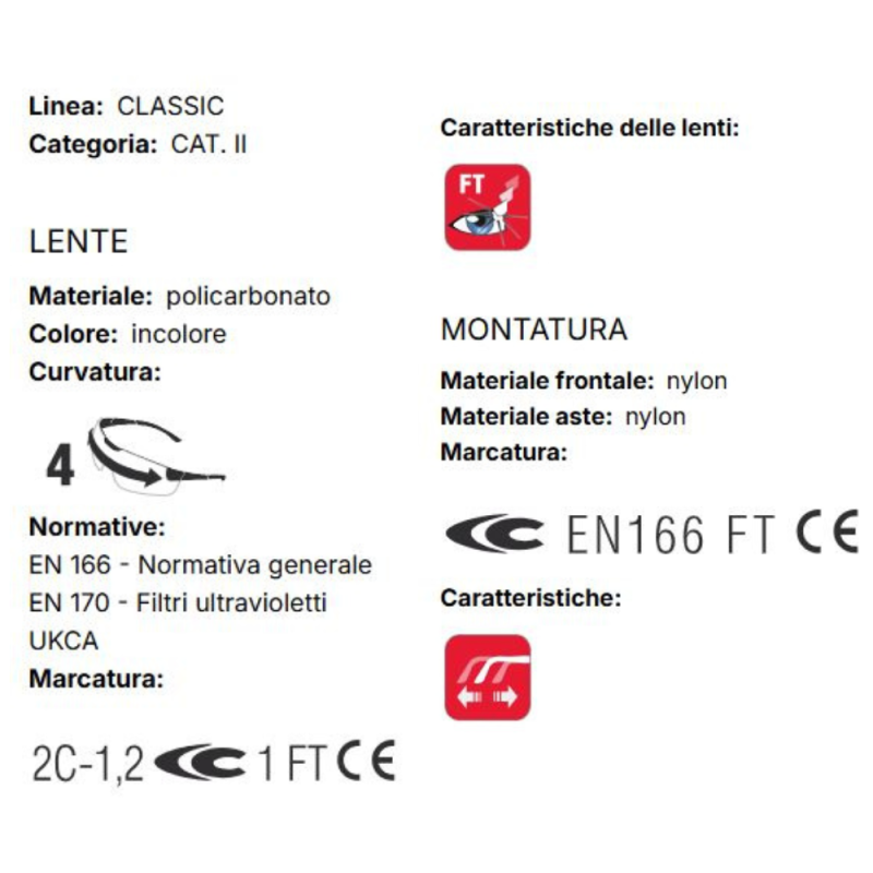 Occhiali ideali per lavori meccanici in ambienti chiusi con buone condizioni di visibilità. Indicati per i visitatori aziendali, sovrapponibili agli occhiali correttivi.