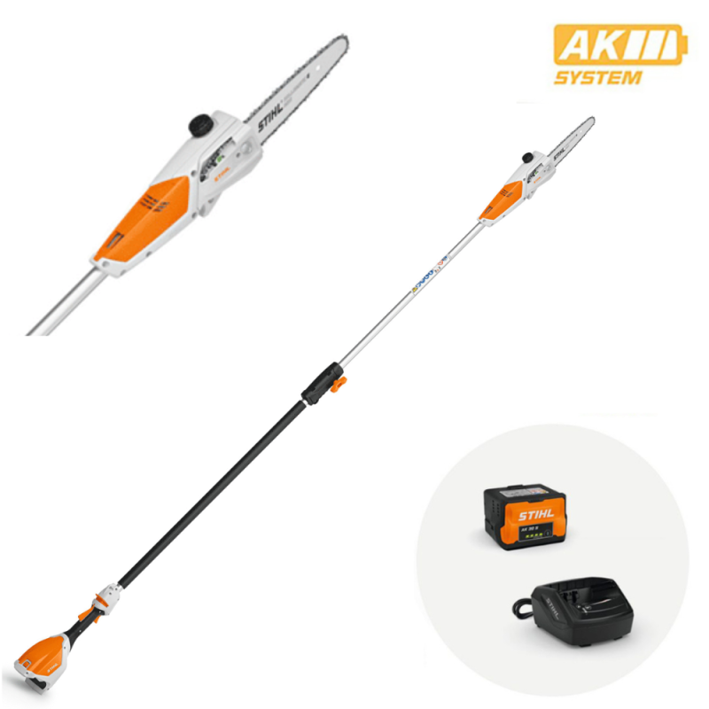 L’impugnatura intuitiva, adatta sia ai destrimani sia ai mancini, assicura un controllo ottimale dell’utensile. Il potatore è dotato di un robusto gancio rami che permette di rimuovere in sicurezza rami tagliati senza fatica aggiuntiva. Il set comprende batteria AK 20 e caricabatteria AL 101, appartenenti al sistema modulare STIHL AK.