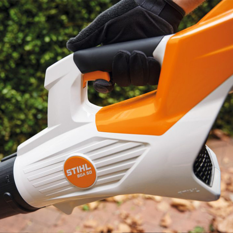 Il compatto e versatile soffiatore a batteria STIHL BGA 50 del sistema STIHL AK è un valido aiuto per i lavori di pulizia impegnativi su aree piccole e medie. Foglie e altri detriti possono essere rimossi efficacemente dalle aree intorno alla casa, come vialetti, marciapiedi, terrazze o prati.